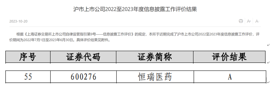 AG亚娱医药荣获上交所信息披露考评A级